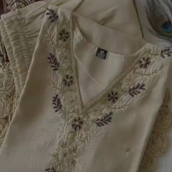 Upgrade your ethnic wardrobe with our Kurti Pent Dupatta Set! Made from premium Roman Silk, this set is designed to provide comfort and style. The heavy quality nylon muslin jecard dupatta features beautiful hand work and latkan details, adding an elegant touch. With a cotton inner lining. Available in sizes M-38 to XXL-44.