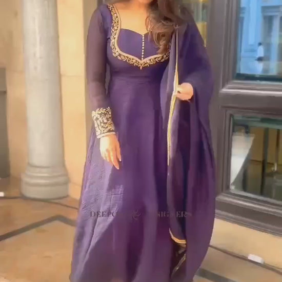 Upgrade your ethnic wardrobe with our NAKSHATRA ANARKALI GOWN. Made with premium Vichitra material, this Anarkali gown features a complete lining, 50" length, and 20"+ sleeves for a perfect fit. The beautiful purple shade and Yok embroidery on the dupatta add a touch of royal finesse to this regal ensemble. Available in sizes S-36 to XXL-44.