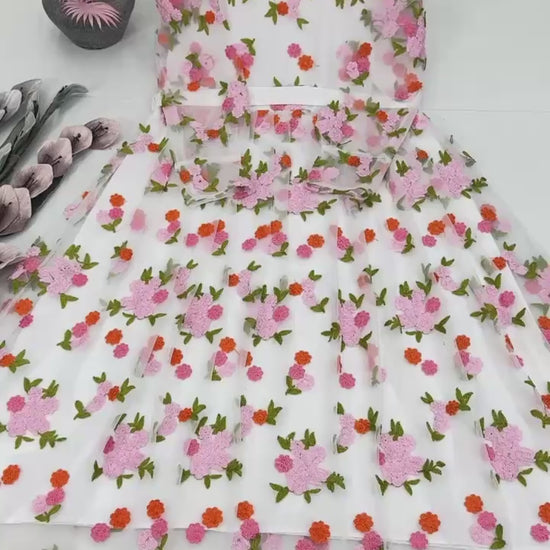 Experience the perfect fusion of tradition and contemporary style with our New Designer Heavy Soft Net Anarkali Gown from Pehnawaa. Crafted from premium soft net fabric, this gown features intricate full embroidery with delicate chin-stitched detailing and a designer belt that accentuates your silhouette elegantly. Designed with stylish bell sleeves and a soft micro cotton lining, it ensures both dramatic flair and all-day comfort. Fully stitched to fit up to size 44, with a graceful 49-inch length and weighing just 500 grams, this gown embodies regal sophistication for the modern woman.