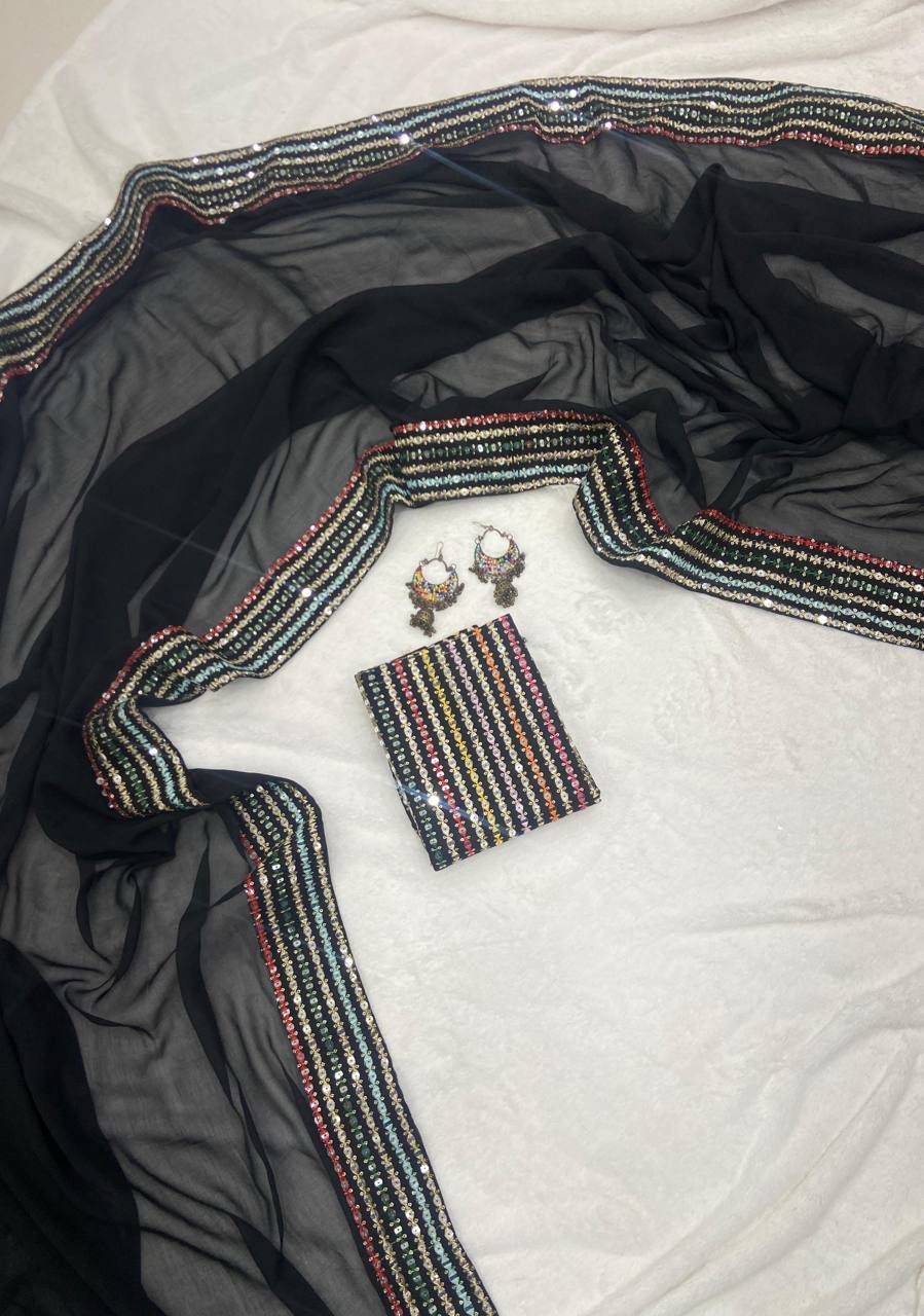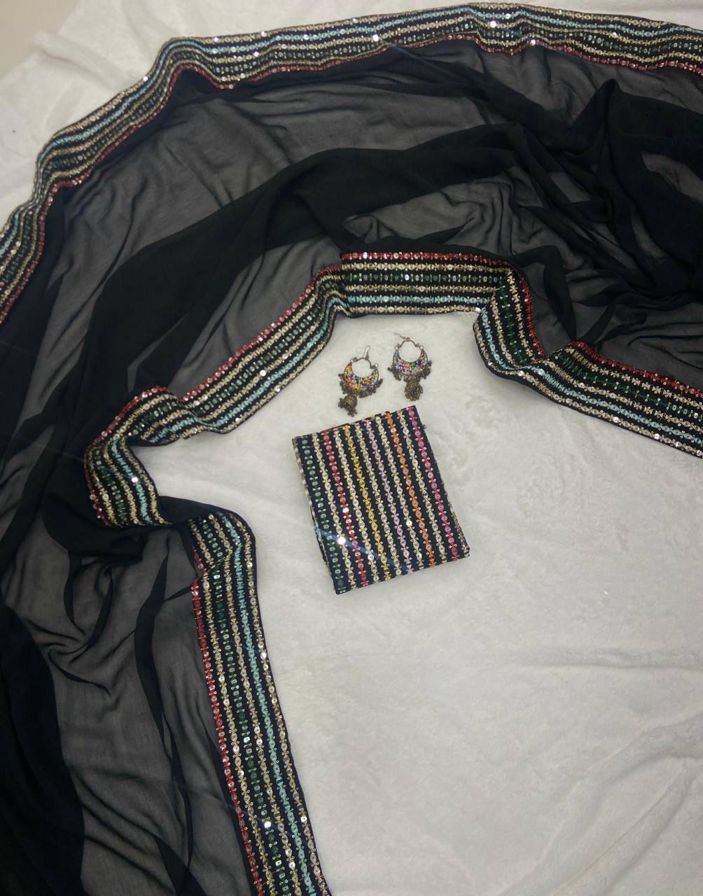 Georgette saree with beautiful lace border and sequence work designer multicolour embroidery work blouse